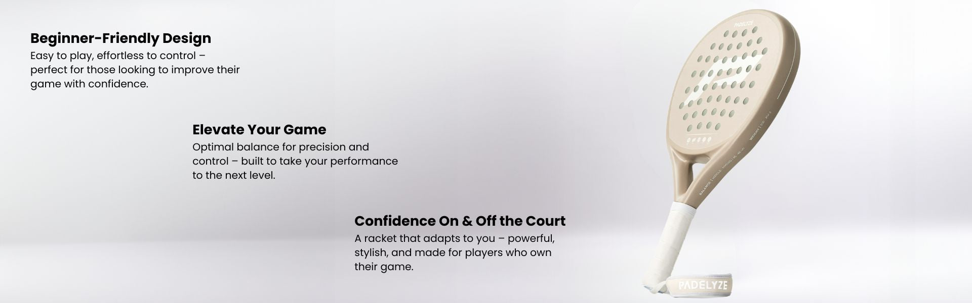 Crafted to match your game and your style, the PADELYZE racket bag is included. Lightweight, durable, and designed for everyday elegance – it keeps your gear safe and makes every court entrance feel like a statement.